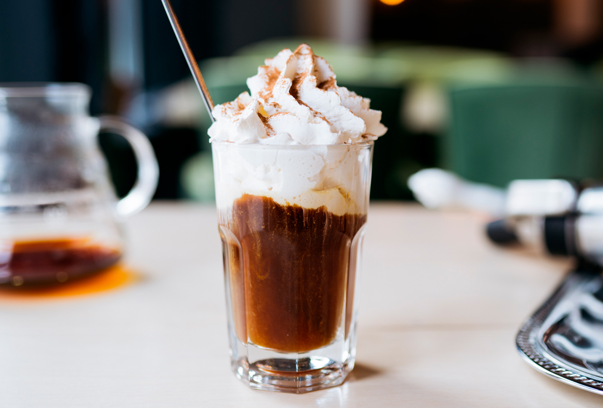 кофе, взбитые сливки, ваниль, тертый шоколад, апельсиновая цедра