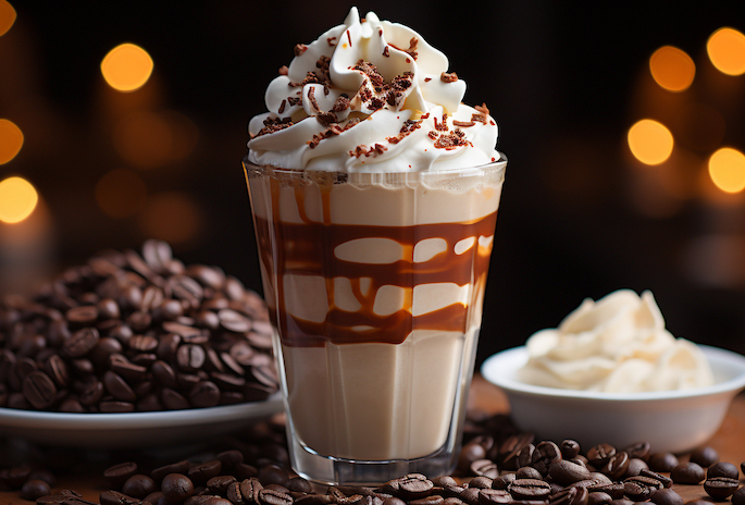 кофе, взбитые сливки, ваниль, тертый шоколад, апельсиновая цедра